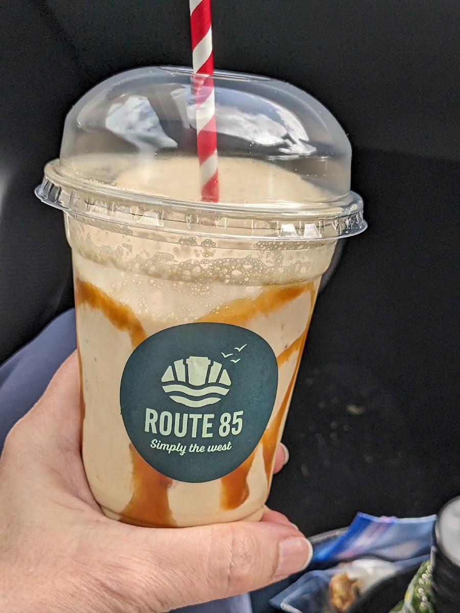 Route 85 is an excellent drive-through coffee shop that accommodates families perfectly. We visited as two families, parked our cars, and placed multiple orders. Despite the large number of orders, the staff remained patient and cheerful throughout, making the experience very pleasant. We enjoyed using the benches available on-site, which provided a lovely spot to sit and enjoy our time. We tried the açaí bowl, coffee, and iced coffee. The coffee was exceptional, and the fruits on the açaí bowl were fresh and delicious. It's definitely a great place to take a break when traveling on that road. Highly recommended!