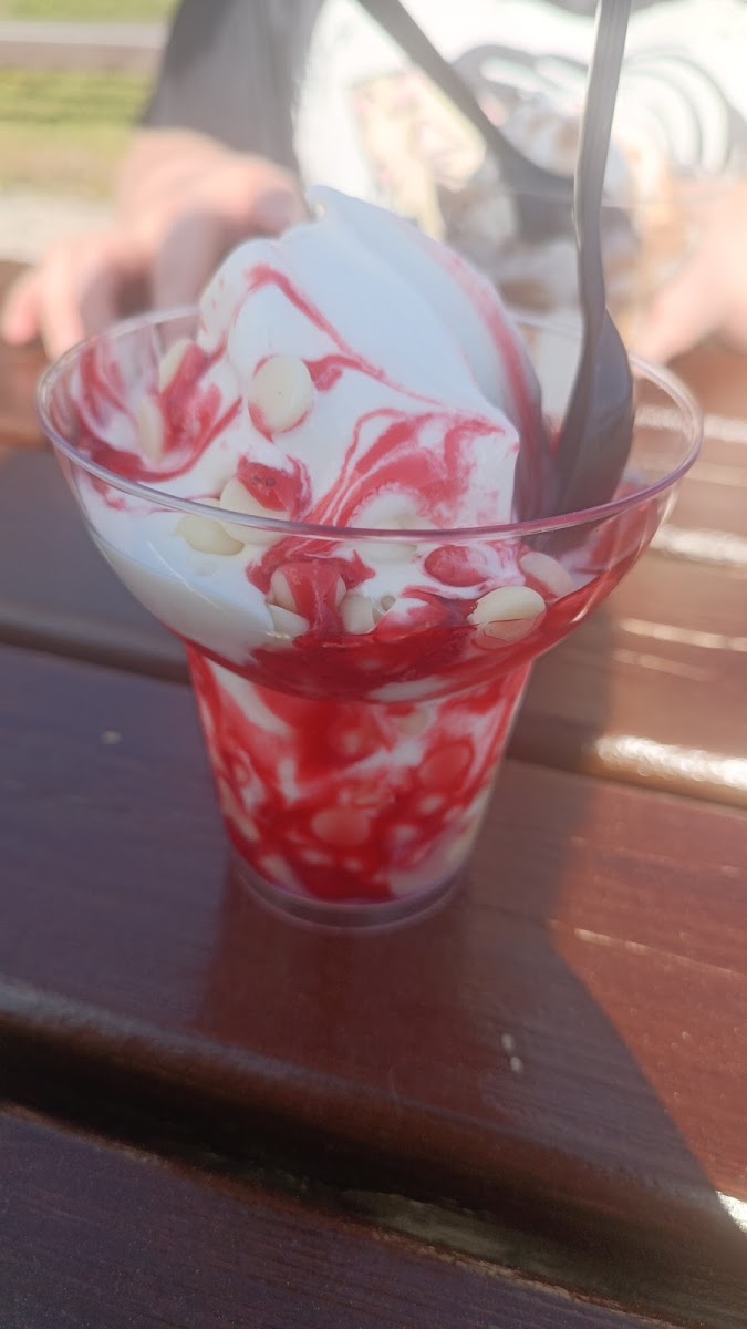 The atmosphere strikes a balance between movement and stillness. While cars glide through for swift service, there’s also a gentle invitation to linger, thanks to the inviting benches and outdoor seating just footsteps away. Whether you’re grabbing a fragrant cappuccino or indulging in one of their lush deluxe sundaes, there’s a subtle warmth here — a moment to savor both your drink and the simple pleasure of shared space.